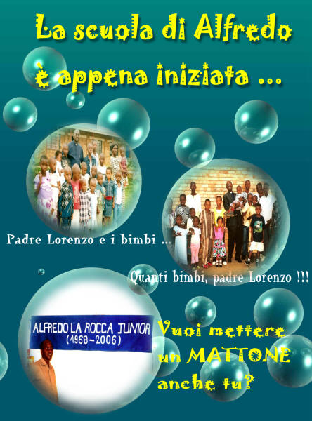 Si sta costruendo la "Scuola di Alfredo jr. - 1968-2006". Senza porte e senza finestre... Il nostro sindaco, i genitori, i maestri, la Parrocchia stanno contribuendo a pagare il 50% dei costi. (Il restante 50% lo sostiene Gina Maria con tutti coloro che la stanno aiutando nella raccolta).