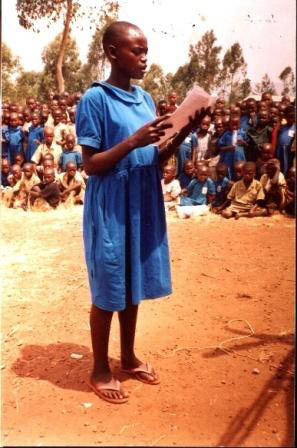 Tutti noi, maestri e bambini della scuola Primaria “Saint Kizito” di Muringa, nella parrocchia di Kiziguro, ti mandiamo saluti in Gesù Cristo. Ho ricevuto la tua lettera di novembre 2005. Grazie per averci mandato i saluti ed un po’ di soldi per comprare 30 uniformi e vestiti scolastici per i bambini poveri della nostra scuola. Grazie.